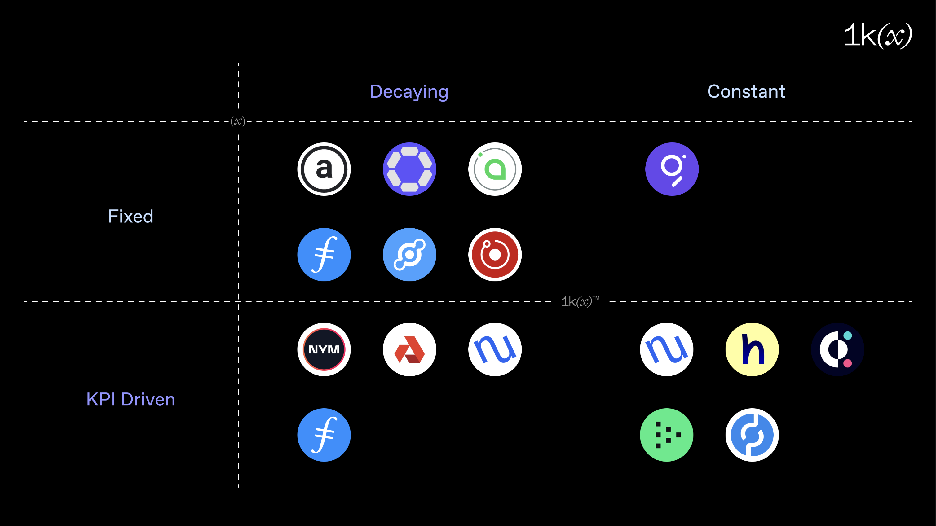 Storj isn’t shown in this graphic as storage nodes are paid fixed $-amounts for their services, i.e. there are no token rewards. Filecoin and Nucypher are represented twice as they have two components of their schedule falling into different quadrants. Let’s dig into each of the four quadrants to explain them a bit further: