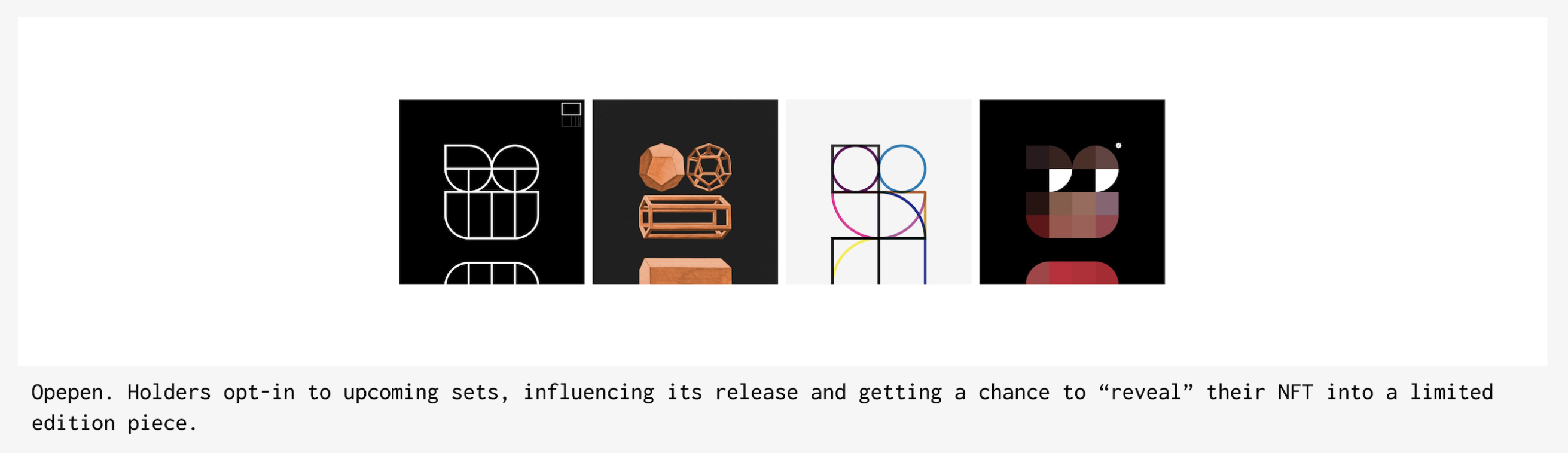 Art with style options released periodically, with each release featuring new limited edition styles holders can opt to “convert” their NFT to e.g. Opepen