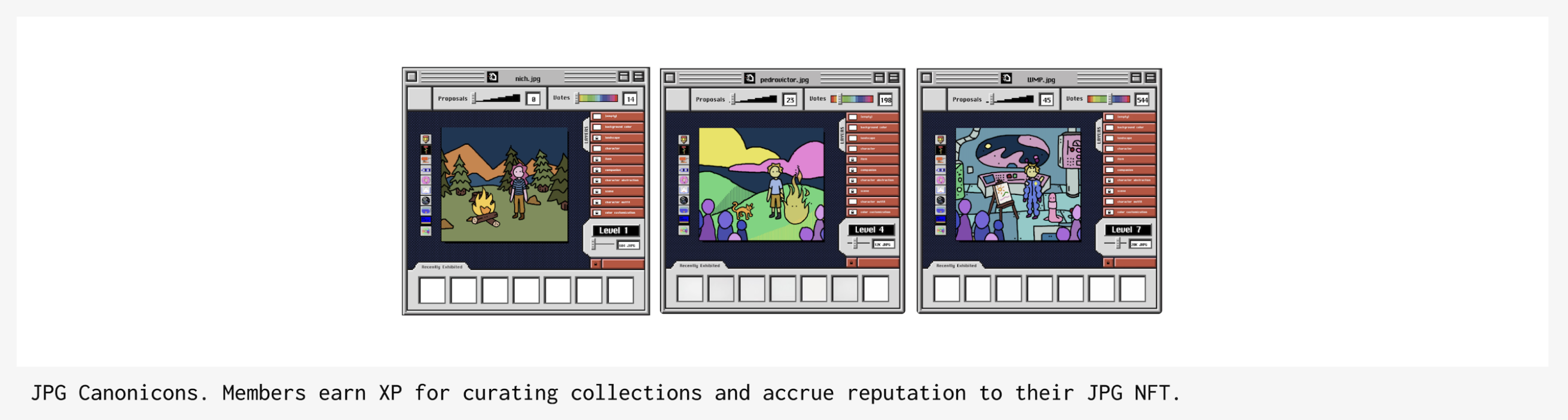 JPG Canonicons artwork represents a unique, cumulative representation of an individual’s involvement in the curation of Canons. Similarly, Deca Decagons level up by consuming Deca Experience Points (DXP) individuals earn by completing daily Quests on the platform