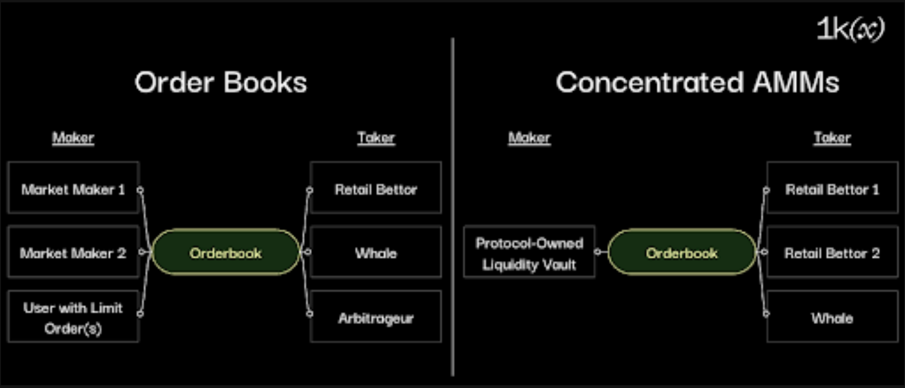 There are several ways to design prediction markets, and most can be divided into two categories: order book models and concentrated AMM (Automated Market Maker) models. Our thesis is that order book models are the more optimal design choice because they allow for better price discovery, enable maximum composability, and ultimately lead to volume at scale.