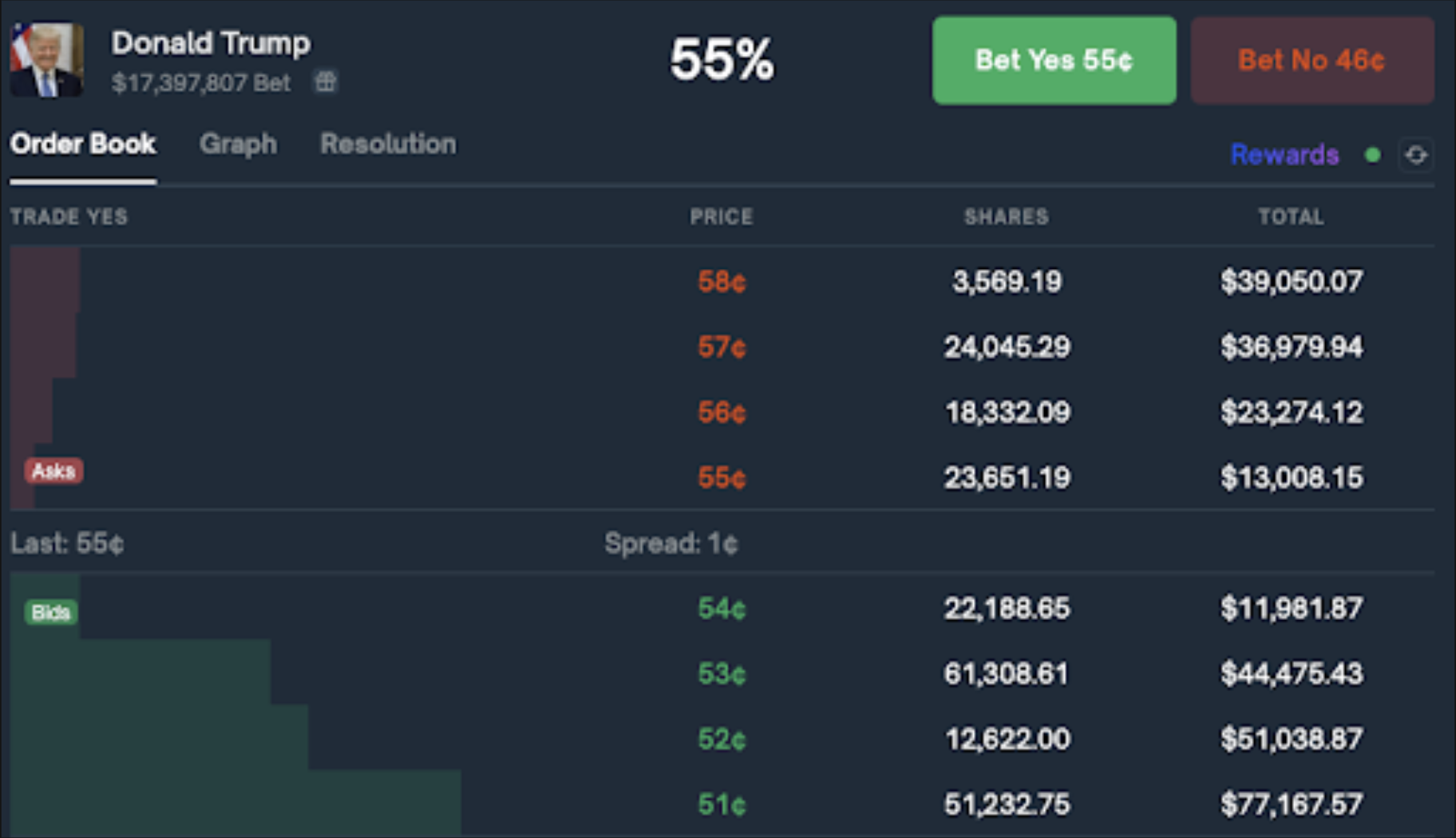 Perpetual Prediction Markets: This concept was explored briefly in 2020 when former leading exchange FTX offered perpetuals for American Election outcomes. You could long the price of $TRUMP and, if he won the American Election, each share could be redeemed for $1. FTX had to change margin requirements as the odds of him actually winning changed. Creating a perpetual mechanism for markets as volatile as prediction markets creates a lot of challenges for collateral requirements because prices can be worth $0.90 one second and $0.1 the next. Thus, there might not be enough collateral to cover the losses of someone who longed the wrong way. Some of the order book designs explored above could help compensate for the fact that prices could change so quickly. The other interesting part of the FTX $TRUMP market is that we can reasonably assume that Alameda was the main market maker in these markets and that without natively deployed liquidity, the books would have been too thin for substantial volumes to occur. This highlights how valuable a native liquidity vault mechanism might be for prediction market protocols.